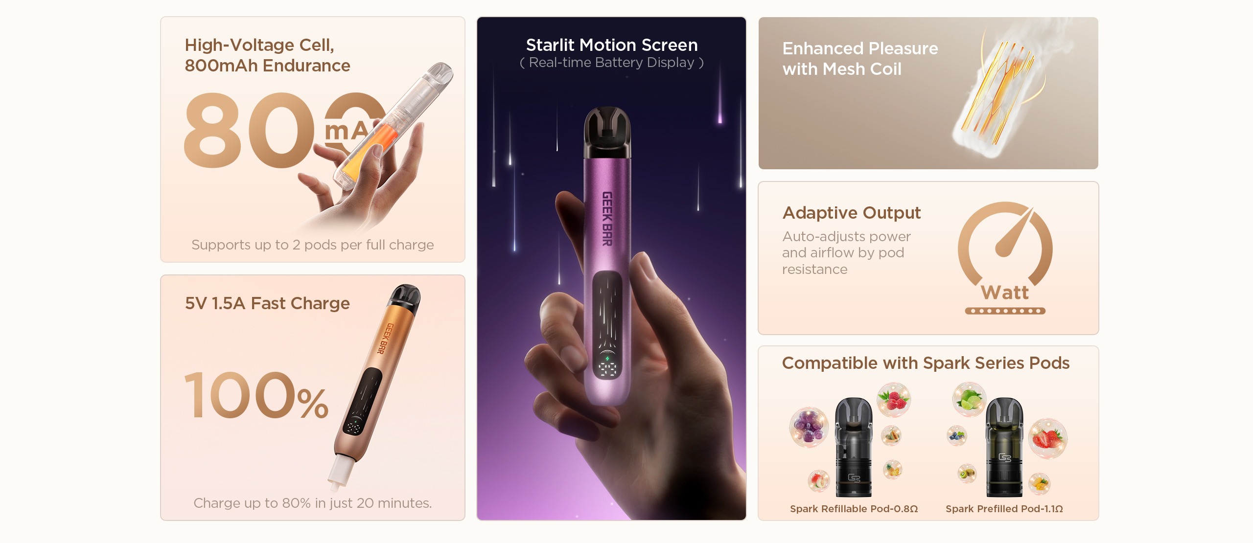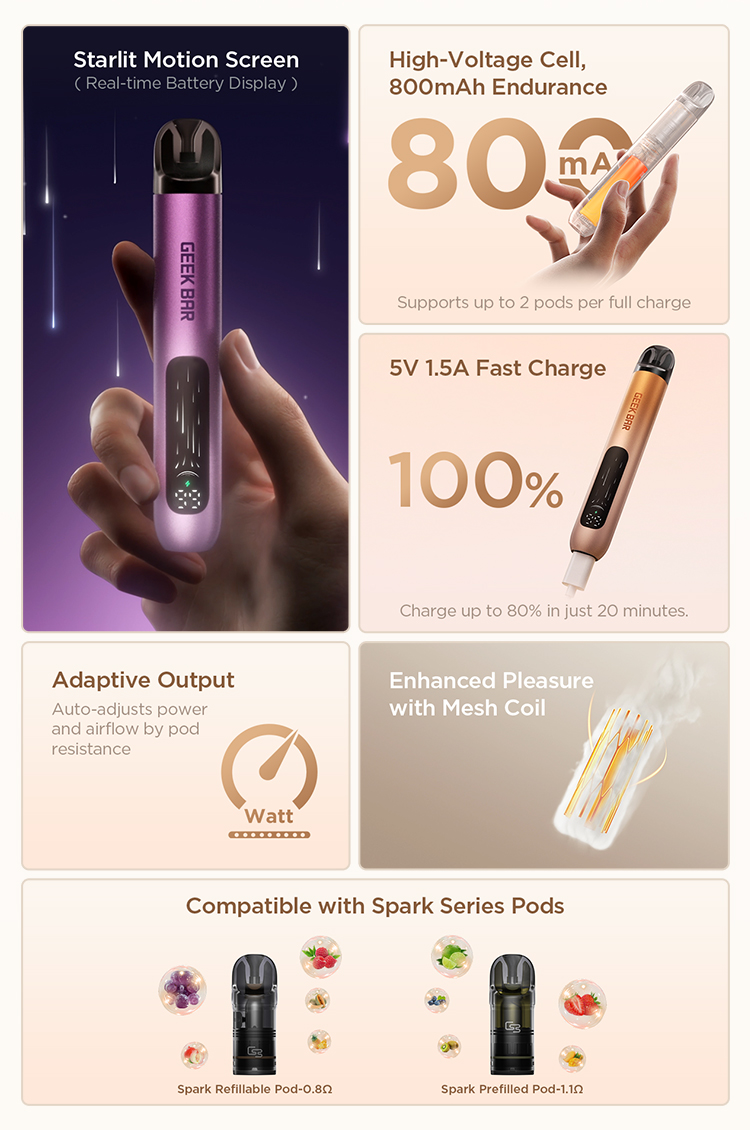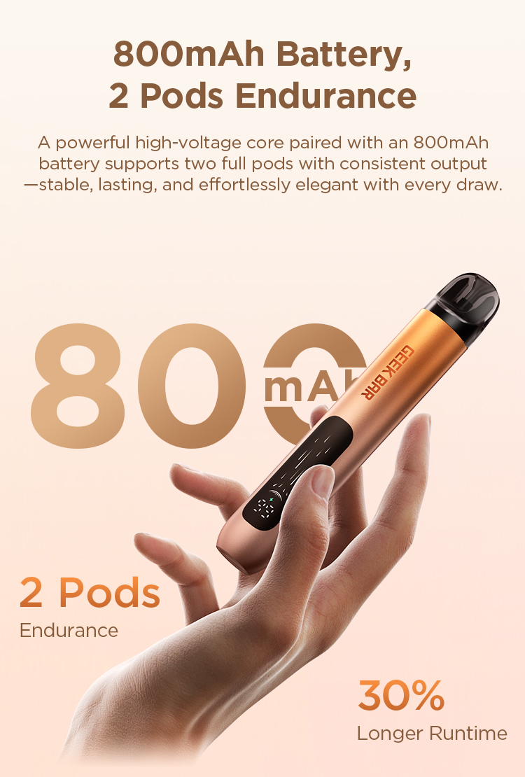 A powerful high-voltage core paired with an 800mAh battery supports two full pods with consistent output—stable,